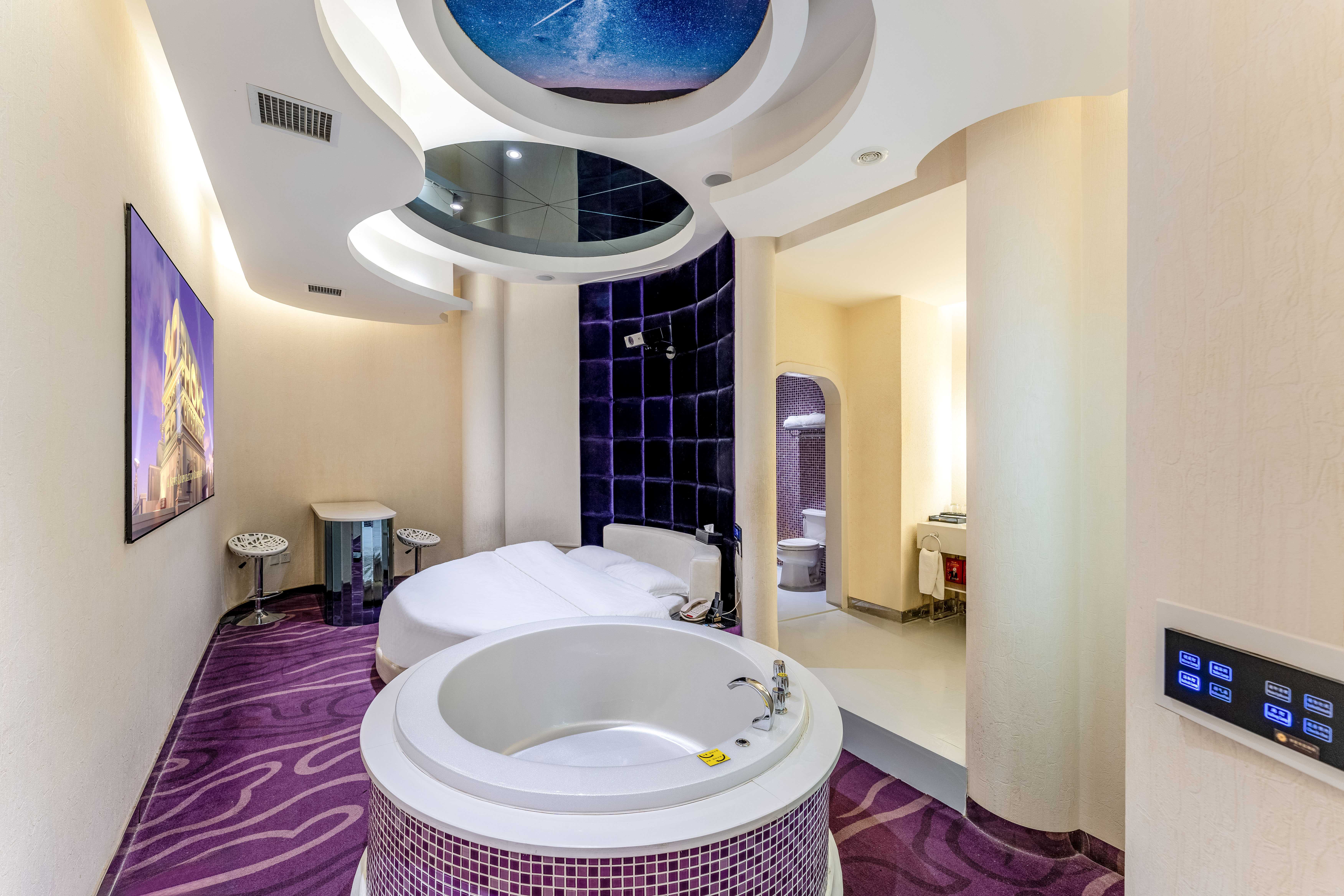 智能影院大床房『 酣暢甜睡+零壓舒適床墊+100寸巨幕投影超清1080P騰訊視頻VIP+圓形浴缸+靜謐空間』